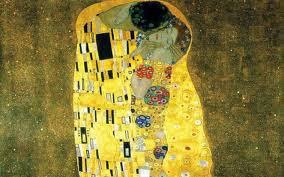 ‘The Kiss‘ – currently held in Austria The Kiss (Lovers) was painted by the Austrian Symbolist painter Gustav Klimt between 1908 and 1909, the highpoint of his “Golden Period”, when he painted a number of works in a similar gilded style. A perfect square, the canvas depicts a couple embracing, their bodies entwined in elaborate robes decorated in a style influenced by both linear constructs of the contemporary Art Nouveau style and the organic forms of the earlier Arts and Crafts movement. The work is composed of oil paint with applied layers of gold leaf, an aspect that gives it its strikingly modern, yet evocative appearance. The painting is now in the Österreichische Galerie Belvedere museum in the Belvedere palace, Vienna, and is widely considered a masterpiece of the early modern period. I have been lucky enough to see it there – truly wonderful!
