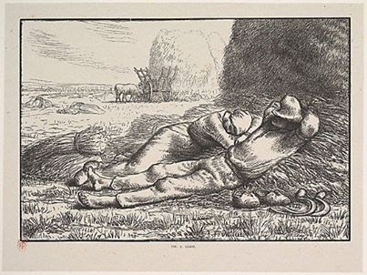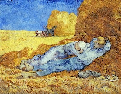 Van Gogh’s ‘Siesta’ – a tribute to Jean-Francois Millet’s ‘Mid-day’ from his Four Moments in One Day series – (see Millet’s beside it)
